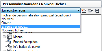 - Dans la boîte de dialogue Enregistrer sous, spécifiez l'emplacement d'enregistrement du nouveau fichier de personnalisation, puis entrez un nom dans la zone Nom de fichier.