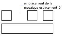 A spacer_0, demonstrated in the following figure, is a spacer that normally has no width. However, it indicates a point in a tile group where you want space to be inserted, if the group has to be stretched during layout. If the spacer_0 tiles in a group are assigned a positive width, all of them are assigned an equal share of the spacing.