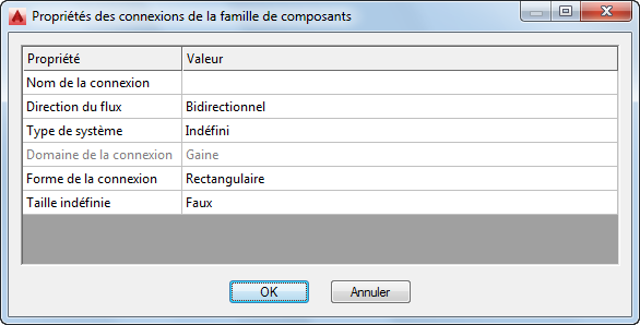 La boîte de dialogue Propriétés des connexions de la famille de composants s'affiche.