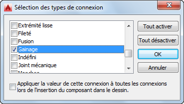 Remarque : Par défaut, les connexions sont de type indéfini. Ce type permet de créer la connexion appropriée pour tous les types de connexion à l'insertion dans un dessin.