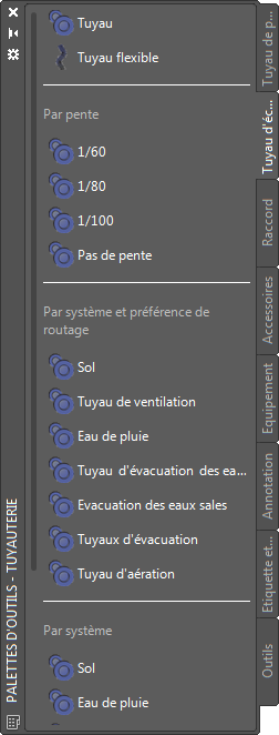 Dans l'espace de travail Tuyauterie, cliquez sur l'onglet Débutgroupe de fonctions Constructionliste déroulante OutilsOutils pour afficher la palette d'outils Tuyauterie.
