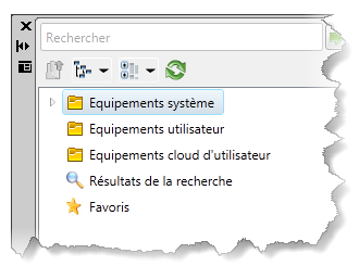 Le navigateur d'équipements permet d'accéder aux équipements système, aux équipements utilisateur, aux équipements cloud et aux résultats de recherche d'équipements.