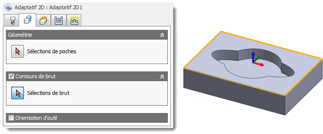 Trajectoire d'outil adaptative 2D pour une opération de création de face