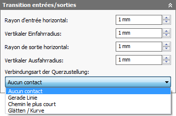 Le paramètre Type de transition est défini sur l'onglet Liaison entre passes.