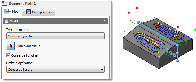 - La boîte de dialogue de l'opération Motif s'affiche. Sélectionnez Motif en symétrie dans le menu déroulant Type de motif.