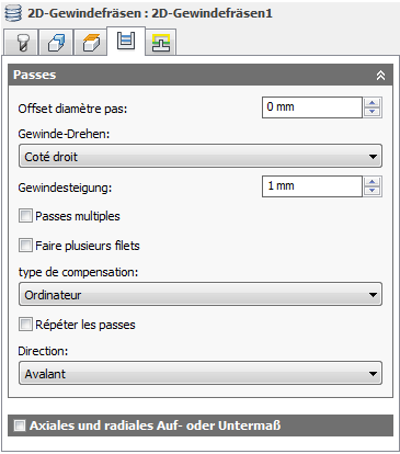 La modification de la valeur de surépaisseur radiale définit automatiquement la valeur de surépaisseur en Z sur la même quantité, à moins de spécifier manuellement cette dernière.