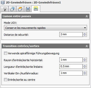 Permet d'utiliser des mouvements d'entrée/de sortie hélicoïdaux au lieu de mouvements d'entrée/de sortie circulaires.