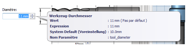 Autant que possible, Inventor HSM Express fournit des valeurs par défaut pour tous les paramètres de stratégie disponibles dans la boîte de dialogue Opération. Vous pouvez contrôler les valeurs par défaut de chaque paramètre en cliquant avec le bouton droit de la souris sur le nom du paramètre pour afficher le menu contextuel illustré ci-dessous.