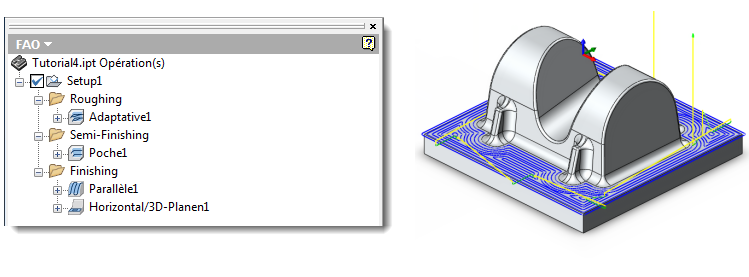 Contrairement aux configurations, les dossiers n'ont pas d'incidence sur les opérations qu'ils contiennent, mais ils sont utiles pour les regrouper. Par exemple, une pratique courante consiste à créer des dossiers distincts pour les opérations d'ébauchage, de semi-finition et de finition.