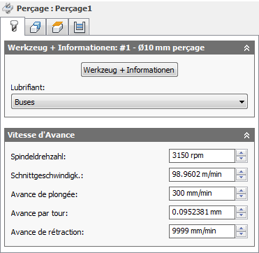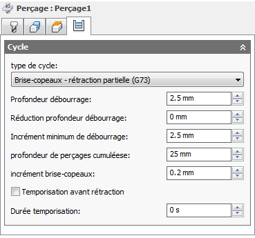 La sélection d'un cycle de perçage détermine les paramètres qui peuvent être spécifiés pour l'opération de perçage.