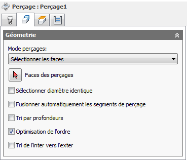 Activez cette option pour réorganiser les perçages classés dans l'ordre par défaut selon un ordre entraînant l'usinage des perçages internes en premier, puis des perçages externes.