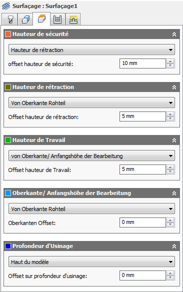 Le paramètre Offset hauteur de sécurité est appliqué. Il est défini par rapport à la sélection du mode Hauteur de sécurité dans la liste déroulante précédente.