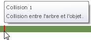 Si une collision se produit entre l'arbre ou le porte-outil et le brut, un marqueur rouge s'affiche sur la commande du montage chronologique avec une info-bulle décrivant la collision.