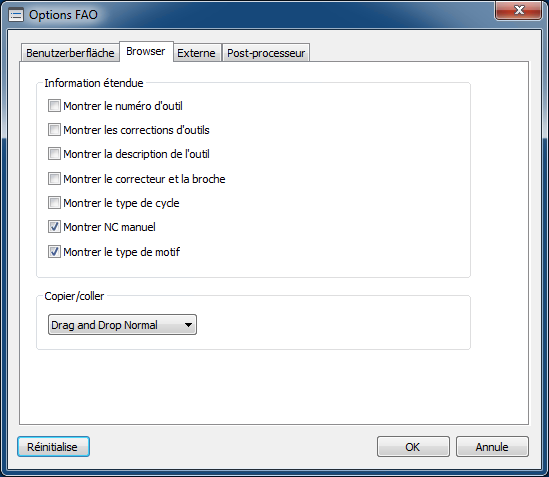 Pour afficher des informations supplémentaires ou détaillées ouvrez la boîte de dialogue Options FAO en cliquant sur l'onglet FAO