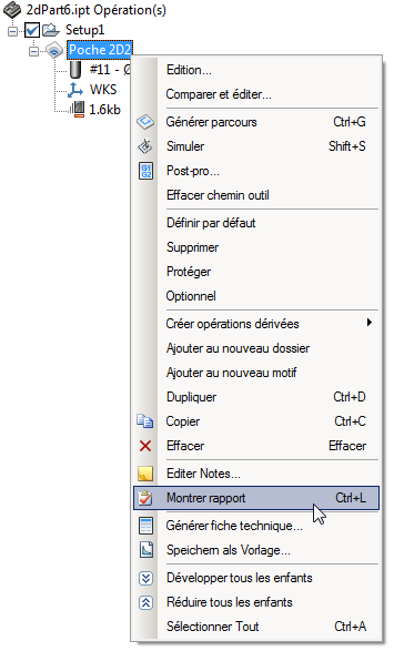 Pour voir le message d'avertissement, cliquez avec le bouton droit de la souris sur l'opération et sélectionnez Montrer rapport dans le menu contextuel.