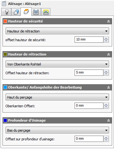 Le paramètre Offset hauteur de sécurité est appliqué. Il est défini par rapport à la sélection du mode Hauteur de sécurité dans la liste déroulante précédente.