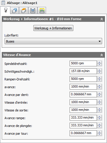 Avance utilisée dans les mouvements de l'outil.