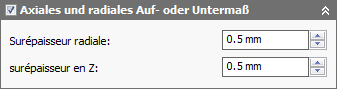 Groupe Surépaisseur dans l'onglet Passes. La définition de la valeur Surépaisseur radiale définit automatiquement le paramètre Surépaisseur en Z sur la même valeur.