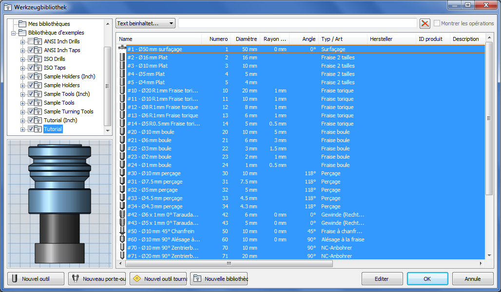 - Dans la boîte de dialogue Bibliothèque d'outils, cliquez avec le bouton droit de la souris et sélectionnez Coller ou appuyez sur Ctrl+V. Les outils figurant dans le Presse-papiers sont ajoutés à la bibliothèque active, mais ne remplaceront pas les outils existants. Si vous souhaitez remplacer des outils, vous devez d'abord les supprimer.