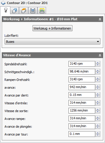 Avance utilisée lors de la progression dans un mouvement de l'outil.