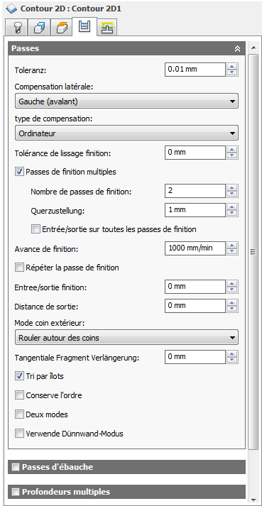 Permet d'appliquer un pas en Z de finition à chaque passe d'ébauchage/de finition lors de l'exécution de plusieurs profondeurs avec au moins un pas en Z de finition.