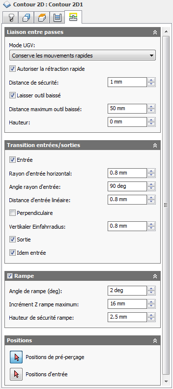 Rayon de l'arc vertical destiné à lisser le mouvement d'entrée en direction de la trajectoire d'outil elle-même.