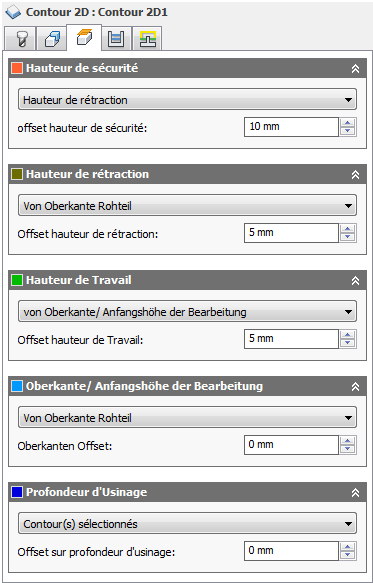 Le décalage de la hauteur de travail est appliqué et dépend de la sélection du mode Hauteur de travail dans la liste déroulante ci-dessus.