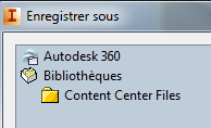 Vous pouvez ouvrir et enregistrer des fichiers dans Autodesk 360 depuis le haut du groupe de fonctions Emplacements dans les boîtes de dialogue de fichier, par ex. Enregistrer sous, Enregistrer la copie sous, Ouvrir, Placer un composant et Créer un composant. Autodesk 360 est disponible dans toutes les boîtes de dialogue de fichier ayant un groupe de fonctions Emplacement.