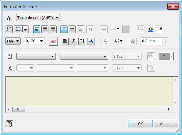 La boîte de dialogue Formater le texte a été simplifiée et affinée pour une utilisation claire et simple. La taille de la boîte de dialogue a été réduite afin de fournir plus d'espace pour la modification dans la fenêtre graphique.