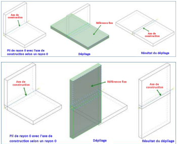 Après le repliage, les références créées lors du dépliage du modèle demeurent. Ce comportement est le même que dans le cas d'un rayon de pliage non nul.