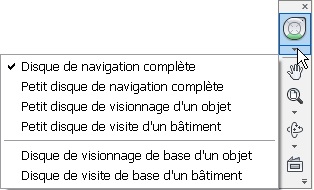 - Dans la boîte de dialogue Options des disques de navigation SteeringWheels, cliquez sur la flèche de déroulement située en regard de l'option Grand disque de navigation ou Petit disque de navigation et sélectionnez un type de disque.