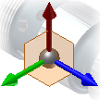 Positionne en mode interactif des points de construction bloqués soit en faisant glisser le trièdre selon une rotation ou un mouvement axial, un déplacement planaire ou un mouvement libre, soit par l'entrée de valeurs sur les axes X, Y ou Z.