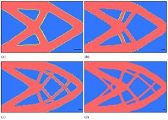 Les résultats publiés indiqués ci-dessous présentent la géométrie optimale de la poutre avec 50 % du volume du domaine de conception d'origine pour les différents diamètres minimum de membres autorisés [2].