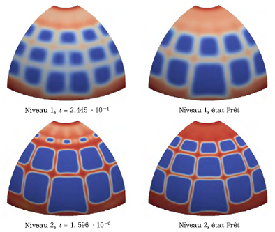 Le générateur de formes nous permet de reproduire le résultat publié. Bien qu'une grande partie du résultat généré soit conforme aux résultats publiés, certaines différences notables sont à noter au niveau de l'arête inférieure de l'hémisphère. Dans le résultat du générateur de formes, seule une fine couche de matière est conservée à l'endroit où les conditions aux limites sont appliquées. Les résultats publiés indiquent une bande beaucoup plus épaisse de matière autour de l'arête inférieure de l'hémisphère. Les résultats publiés indiquent également des variations au niveau de l'épaisseur de cette bande de matière, probablement en raison des conditions aux limites de symétrie utilisées.