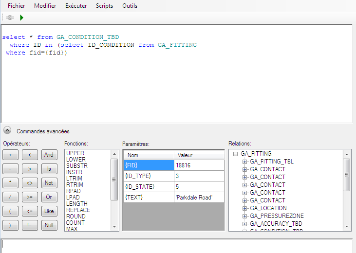 Dans le schéma de la base de données Gaz, il existe une relation entre la classe d'objets GA_FITTING et la classe d'objets GA_CONDITION_TBD. Interroger la CONDITION et l'afficher dans le formulaire.