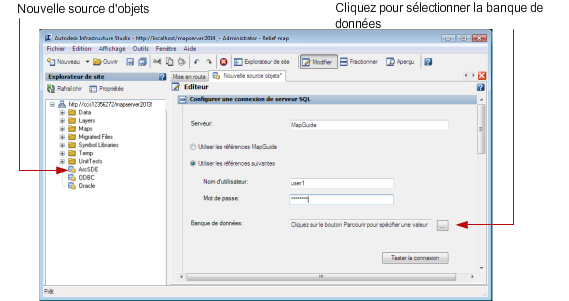- Sur la barre d'outils d'Autodesk Infrastructure Studio, cliquez sur Enregistrer pour stocker cette ressource de connexion dans le référentiel.