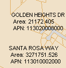 L'exemple suivant présente une étiquette de trois lignes. Elle affiche le nom de la rue sur la première ligne, la superficie de la parcelle sur la deuxième ligne et le code APN sur la troisième ligne.