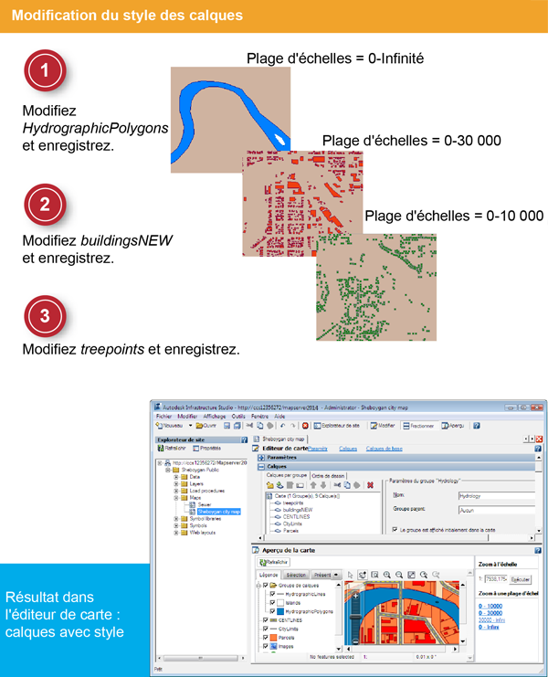 Dans cet exercice, vous allez fournir des styles pour certains des calques qui n'ont pas encore été modifiés afin que les calques de la carte s'affichent dans la couleur et aux échelles appropriées.
