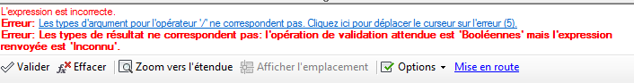 Lorsque vous enregistrez une expression, elle est toujours vérifiée, pour en garantir la validité. Vous pouvez également vérifier votre expression avant de l'enregistrer.