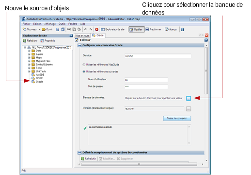 - Sur la barre d'outils d'Autodesk Infrastructure Studio, cliquez sur Enregistrer pour stocker cette ressource de connexion dans le référentiel.