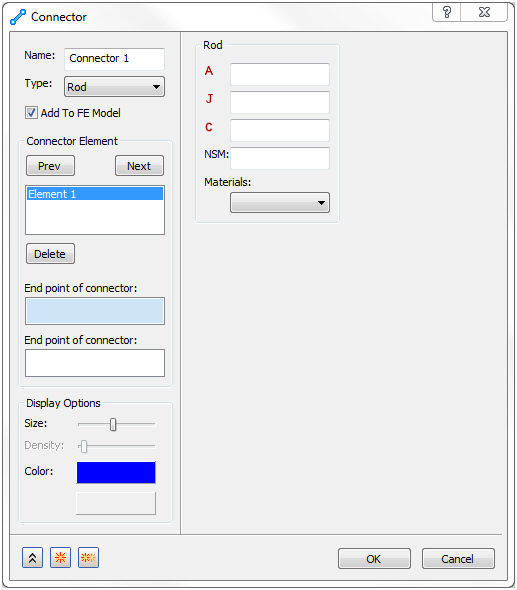 Une fois les connecteurs ajoutés à Modèle d'éléments finis, un noeud unique est créé, contenant tous les connecteurs. Il vous permet de créer un connecteur sans passer par l'arborescence du modèle. Les connecteurs peuvent également être sélectionnés ici pour être inclus dans le modèle d'analyse.