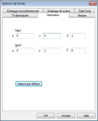 2. Dans l'onglet Orientation de la boîte de dialogue Options de fichier, entrez les valeurs nécessaires pour ajuster l'orientation du modèle.