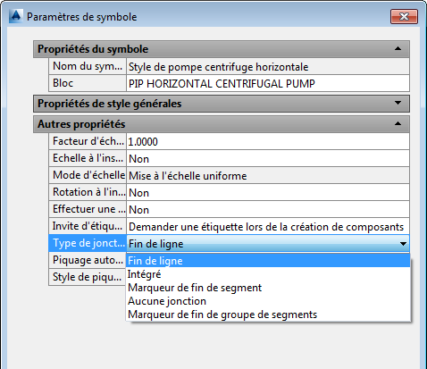Les propriétés de symbole du type de jonction comportent les options suivantes :