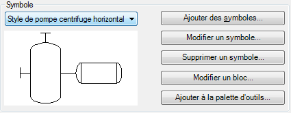 Affiche les noms des symboles disponibles pour la définition de composant P&ID sélectionnée.