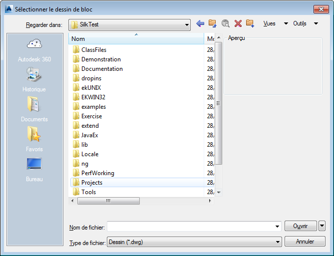Affiche la liste des blocs contenus dans le dessin sélectionné.