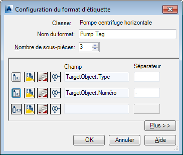 Affiche des icônes sur lesquelles vous pouvez cliquer pour définir plus en détail le format d'étiquette.