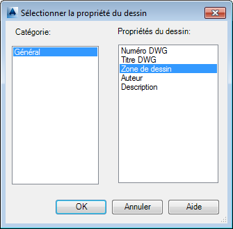 - Dans la boîte de dialogue Sélectionner la propriété du dessin, effectuez les opérations suivantes :