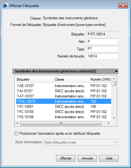 Si votre administrateur a configuré un format d'étiquette, la boîte de dialogue Affecter l'étiquette s'affiche lorsque vous ajoutez un composant ou une ligne exigeant une étiquette.