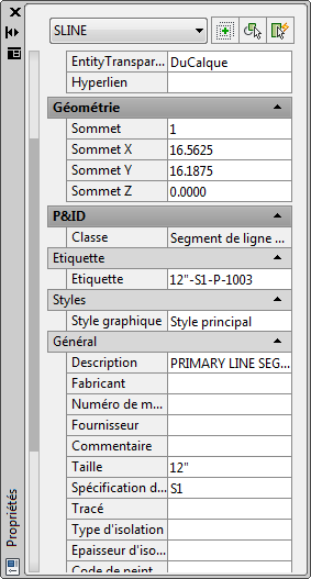 La palette Propriétés permet d'accéder rapidement aux données des composants et des lignes.