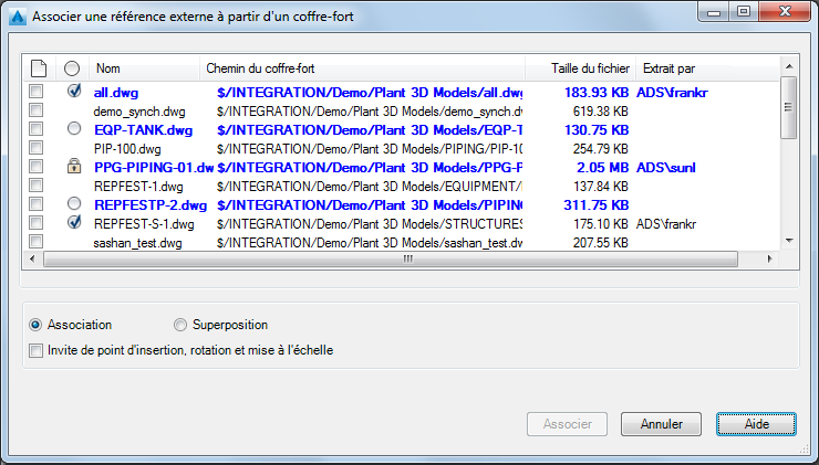Permet d'associer un fichier de projet directement à partir du coffre-fort. Il n'est pas nécessaire de télécharger le fichier de référence externe dans l'espace de travail local.